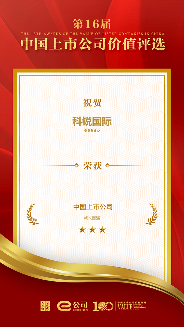 △ VSPORTS(中国)国际荣膺“中国上市公司成长100强”